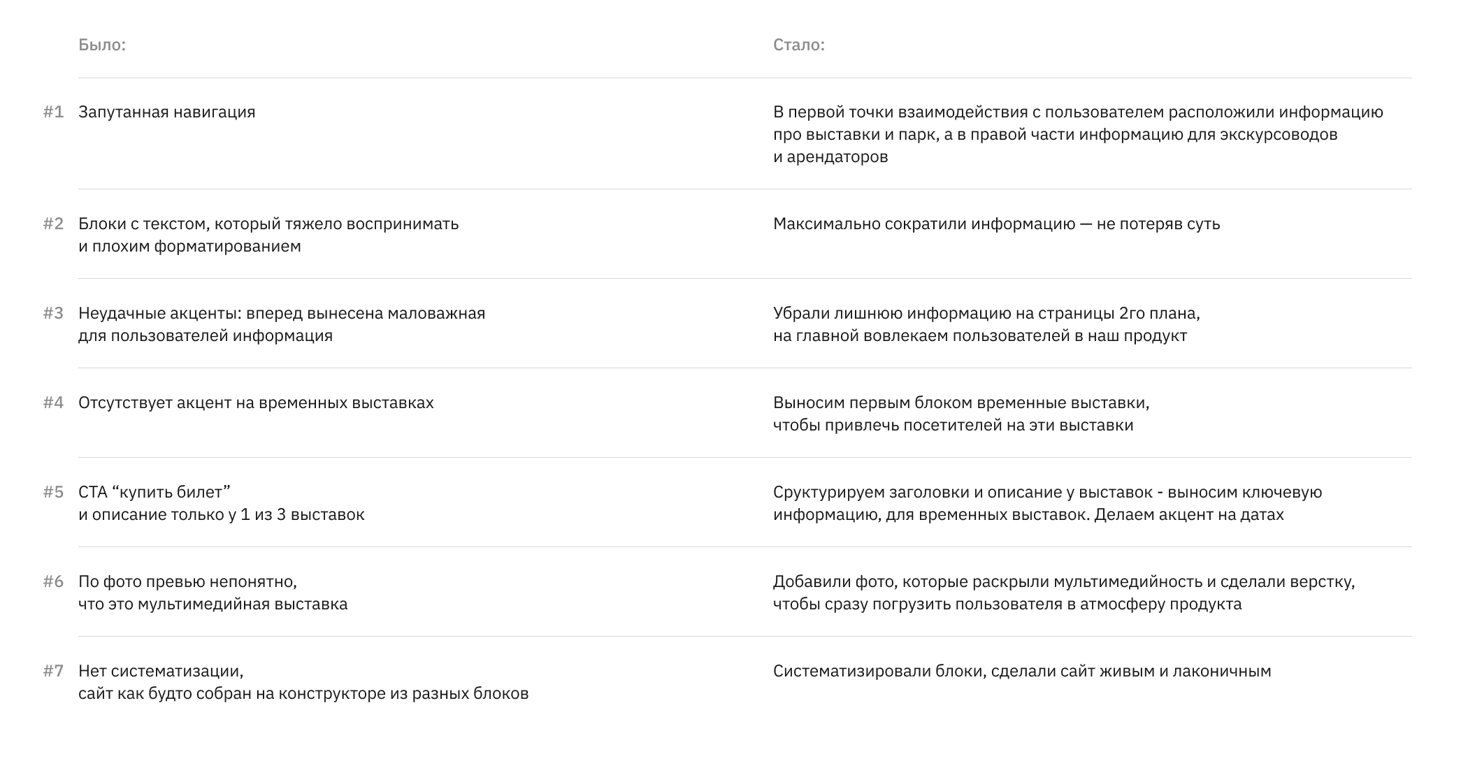 2. Поменяли акценты — выставки в начало, а второстепенная информация в конце