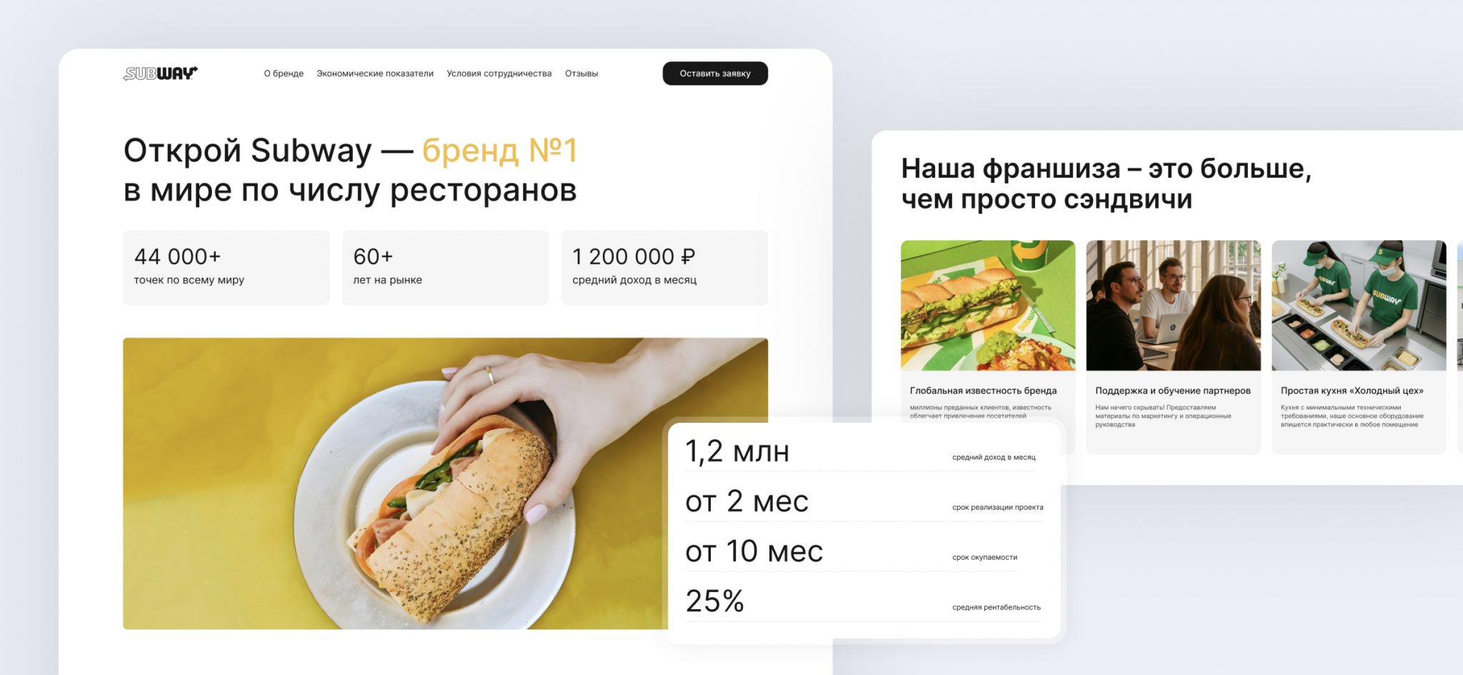 Зачем изобретать велосипед? Смотрим, как аналогичные задачи решают конкуренты. Не чтобы скопировать, а чтобы понять: есть решения лучше? Что стало стандартом в отрасли? В проекте для Subway мы изучили сайты Додо и Бургер Кинг и увидели, что промежуточный экран меню – это просто лишний шаг, который только мешает.